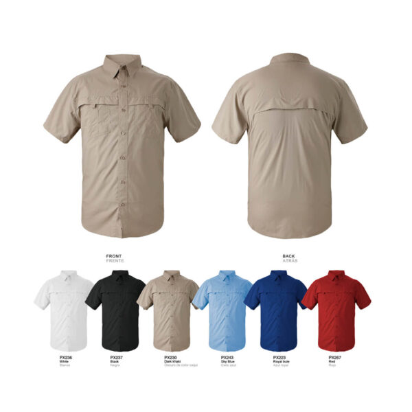 CAMISA MANGA CORTA DE CABALLERO-TIPO COLUMBIA CON LOGO BORDADO EN TETILLA